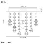 Acton is a classically stunning range of flush ceiling lights and complementary wall lamps, enabling the consumer to add sparkle and class to any low ceiling room. The round and square polished chrome frames are each available in 3 different sizes and use crystal components to compliment the shape of the ceiling plate. The round frame hangs strands of clear crystal buttons with a crystal sphere drop whilst the square frames swap the spheres for the more appopriate clear crystal prisms. Both designs are available in a 1, 4 and 5 light using E14 lampholders that take maximum 60W lamps.