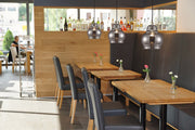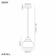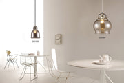 Available in two different colour finishes and 3 unique designs the Ariel range creates a modern lampshade effect using slim, round and bell shapes in various sizes and coloured glass. All three pendant sizes have a colour option of either polished chrome and smoked glass or polished chrome and cognac glass. The translucent glass creates a stunning optical effect when the pendants are illuminated. The smaller pendants take an E27 maximum 40W lamp whilst the larger pendants take an E27 maximum 60W lamp.