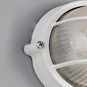This small collection of IP44 wall lights offers both designs in a round or oval shape in two optional colour finishes - white or black. The grid guard framework provides character to the range design whilst also giving an added element of protection for the glass domes which house the E27 lampholder. A maximum 40W allowed for use in these fixtures provides ample light for outdoor or even bathroom settings if desired.