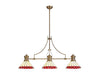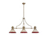 Regal Lighting SL-1015 3 Light Tiffany Pendant Antique Brass With Red and Cream With Clear Crystal Shades
