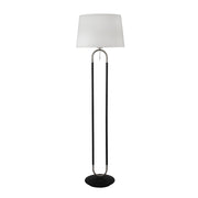 Searchlight Jazz 1Lt Floor Lamp, Satin Silver And Black, White Velvet Shade. Pull Switch • 41432SS